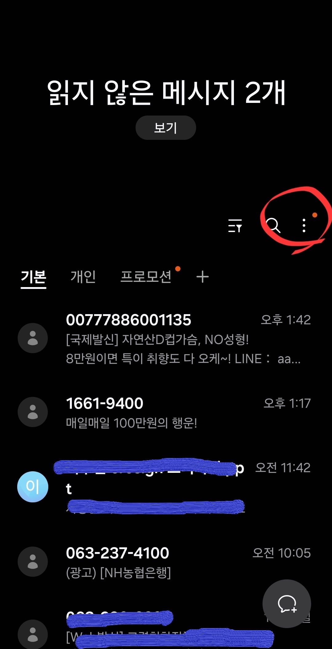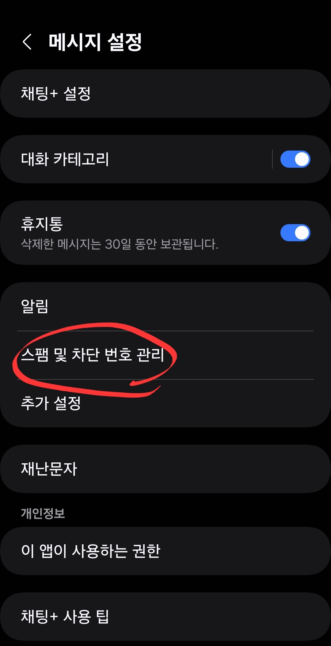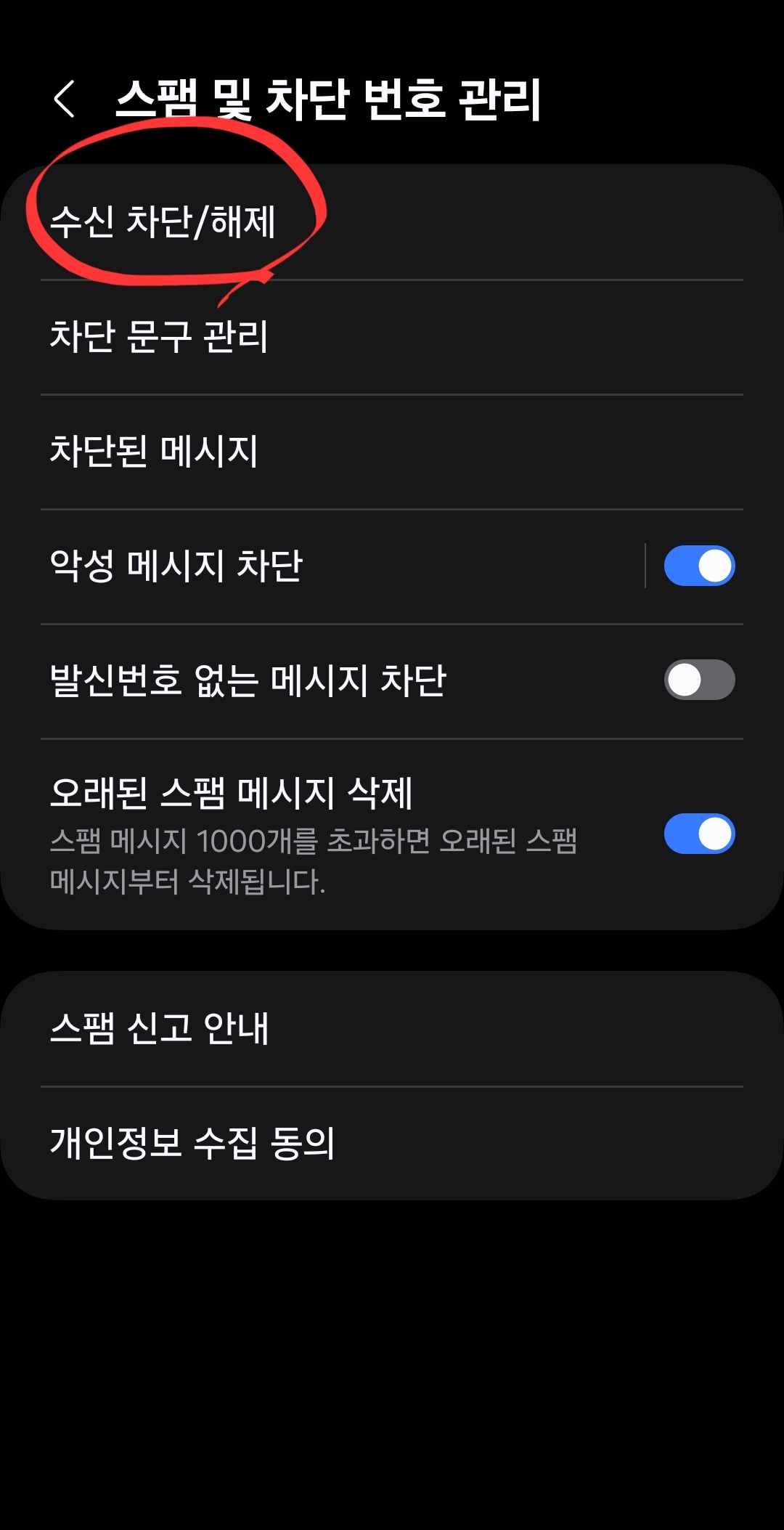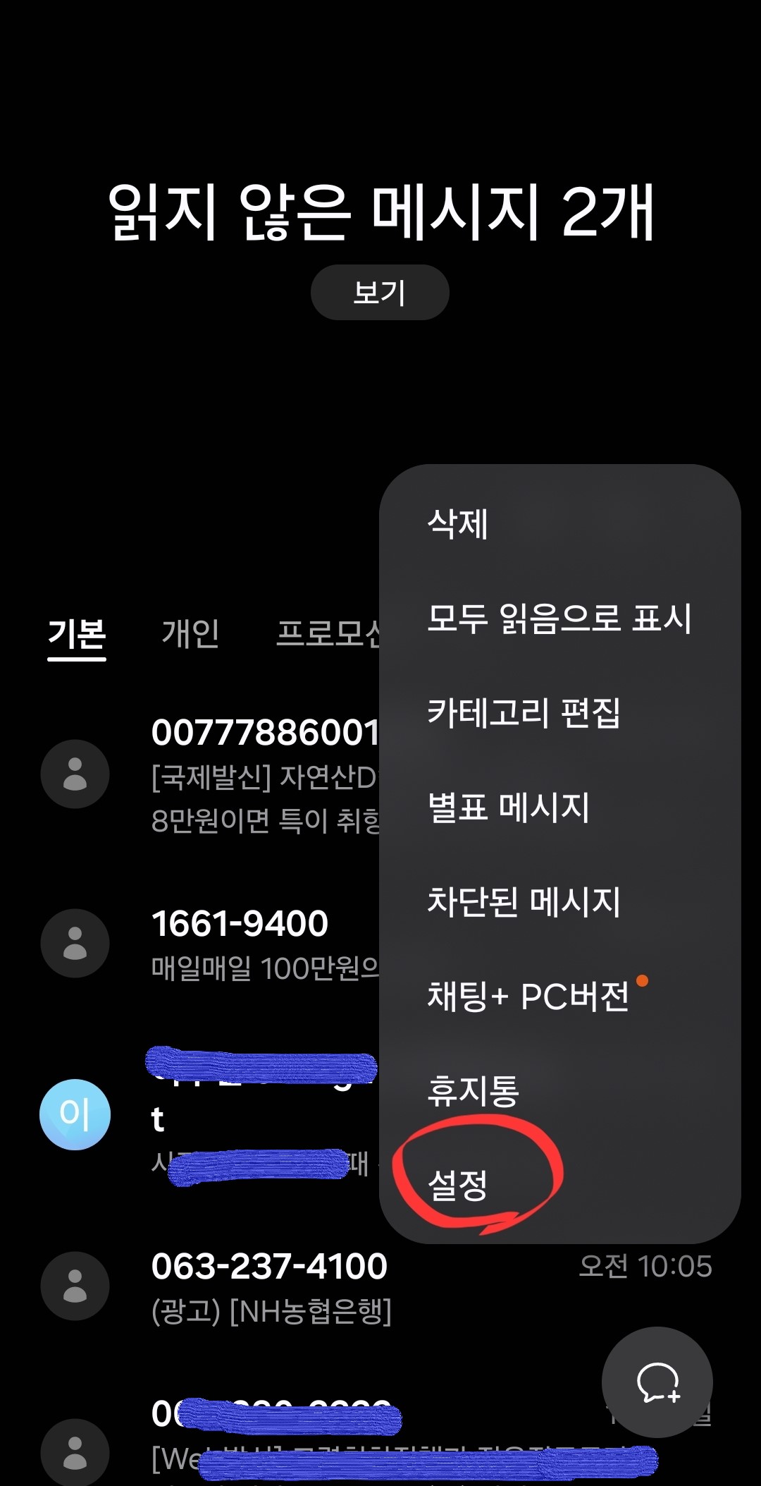 다른 방법을 찾다가 알게 되어 이런 종류 스팸문자 차단방법을 알게 되어 공유합니다.