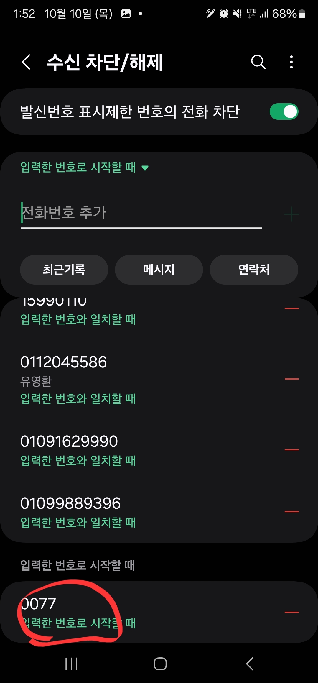 7. 새로운 스팸 번호가 등록 됨. 끝.